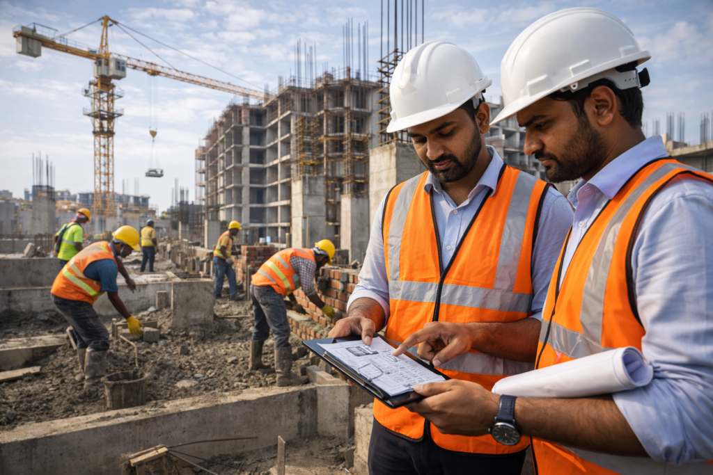 Our experienced civil engineers, supervisors, and skilled workforce ensure proper planning, strong structural work, and timely project completion. From foundation and RCC framework to finishing and external development, we execute every stage of construction with technical precision and careful supervision.